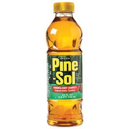 24 oz, pine sol cleaner, powerful scent, disinfects & used to clean grease & heavy soil stains & is antibacterial, original formula only, on non-porous surfaces.